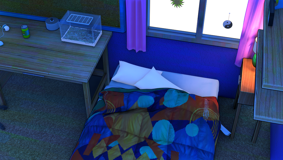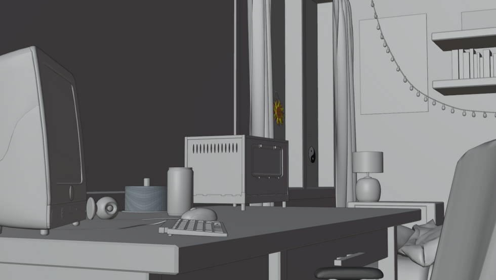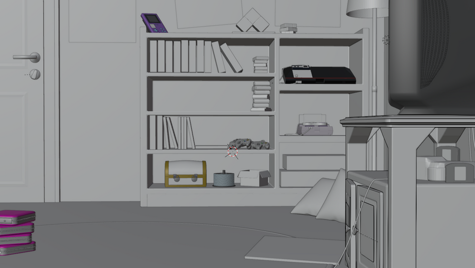 Almost all of the elements within Taylor's Room were created in Blender. Any elements that involved clues that had to be rearranged was done during post-production after the initial room set-up was complete.